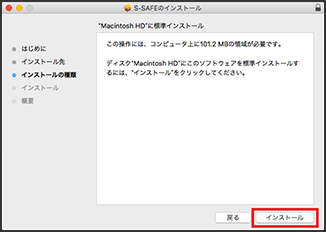 S-SAFEのインストール先を選択し、「インストール」をクリックしてください。