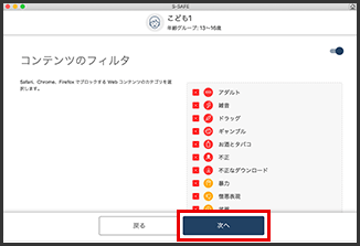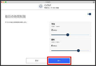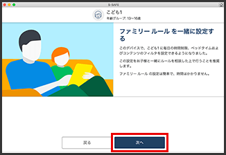 ファミリールールを設定します。「次へ」をクリックしてください。