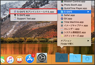 セキュリティソフト(アプリケーション)をごみ箱に移動することだけでは、S-SAFEはアンインストールできません。S-SAFEのアンインストーラを使用する必要があります。