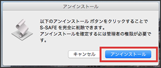S-SAFEをアンインストールするには、管理者権限のユーザでログインしている必要があります。