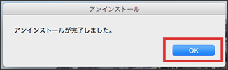 アンインストールが完了しました。[OK]をクリックしてください。