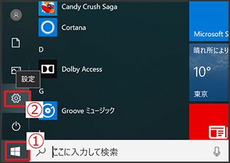 画面の左下隅から、[スタート] - [設定]の順にクリックします。
