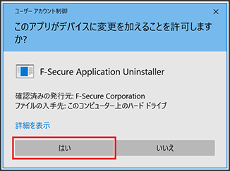 ユーザーアカウント制御の画面が表示された場合は、「はい」をクリックしてください。