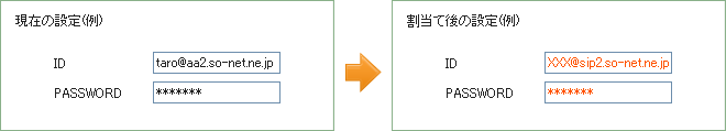 | 接続ID | 固定IPサービス専用ユーザーID+「.so-net.ne.jp」 例:XXX@sip2.so-net.ne.jp |