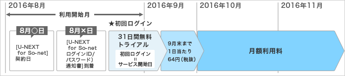 サービス開始日がU-NEXTサービスへ認証手続き(ログイン)した日の場合