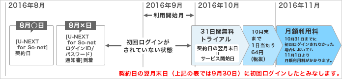 契約日の翌月末日までにU-NEXTサービスへ認証手続き(ログイン)をされない場合
