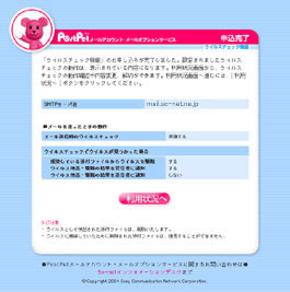 「メール受信時のウイルスチェック機能を申し込む」ボタンをクリックしてください。