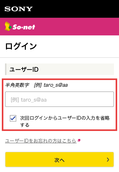 「次回ログインからユーザーIDの入力を省略する」にチェックを必ず入れておこう!