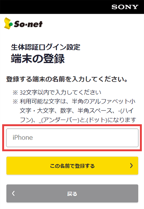2. 名前を入力して「この名前で登録する」のボタンをタップします。