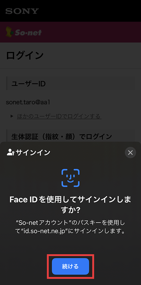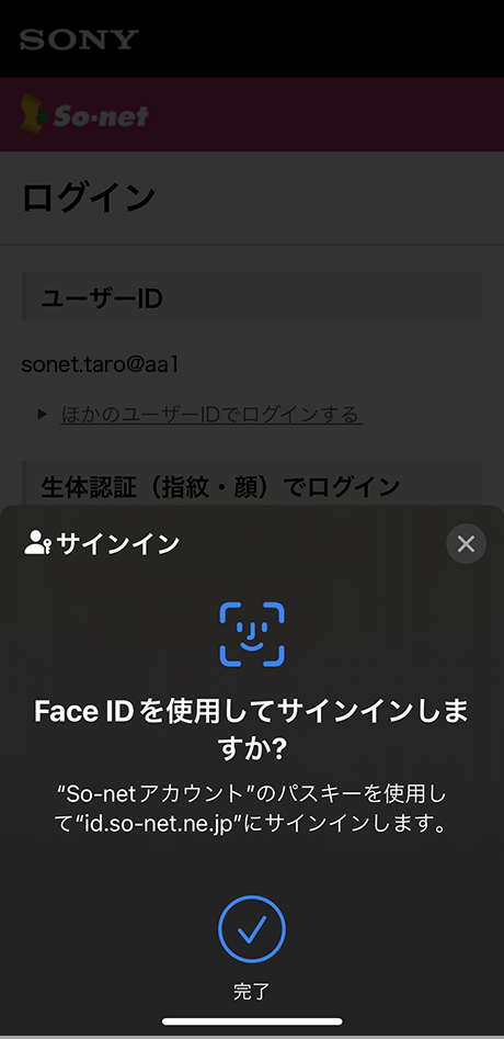 So-net のかんたんログイン(生体認証)とは、スマートフォンやタブレットなどに搭載されている、指紋や顔などの身体的特徴を利用した安全性の高い認証のことです。