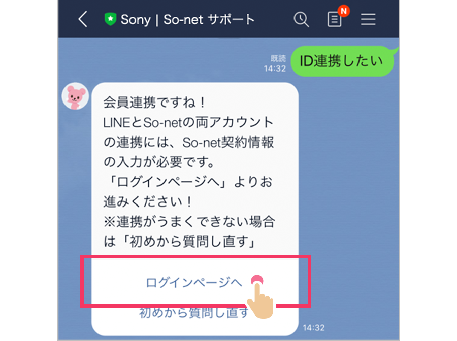 連携ページに移動し、ID連携の方法を選び「ID連携する」ボタンを押す