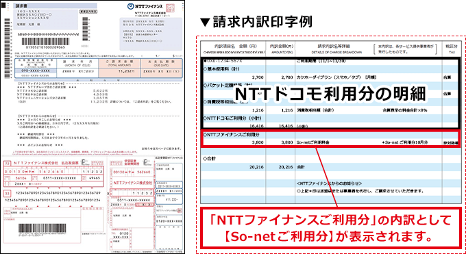 So-netのご利用料金をドコモのご利用料金と合わせてNTTファイナンスからお客さまにご請求させていただきます。
