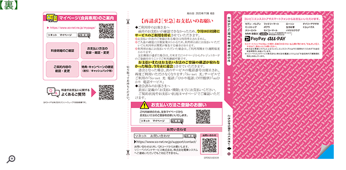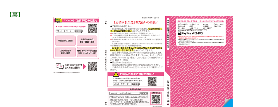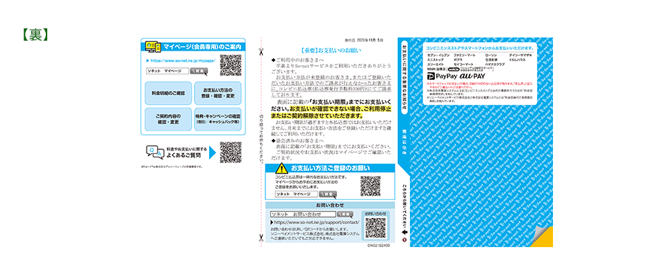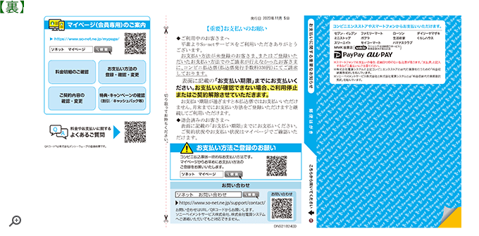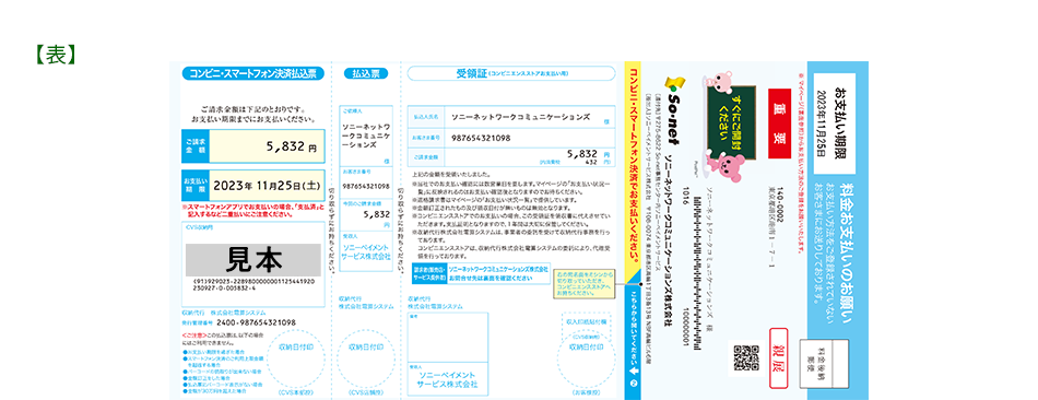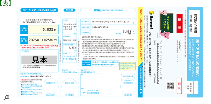 - ※2023年11月ご請求(10月ご利用分)より、コンビニ払込票にはご請求明細を記載いたしません。以降はマイページのご請求明細をご利用ください。