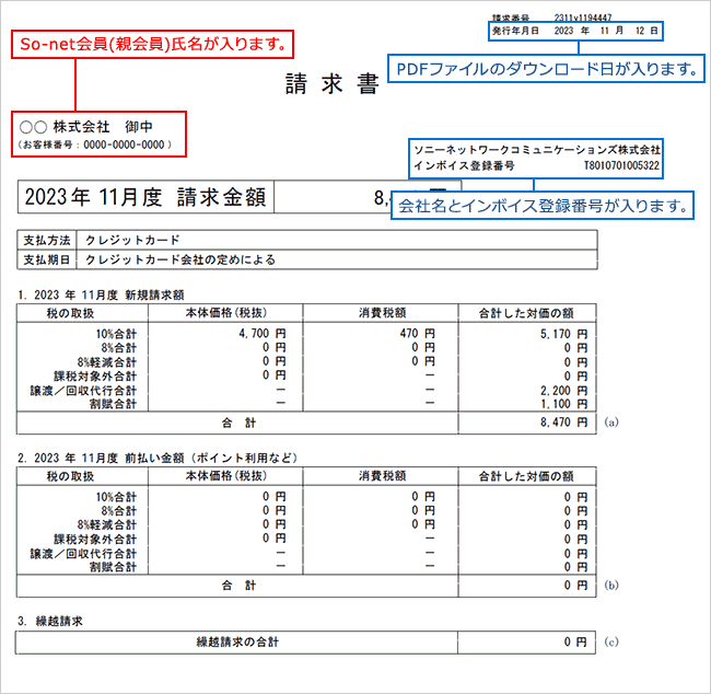 So-netの請求書は、2023年11月ご請求(10月ご利用分)からインボイス制度に対応いたします。詳しくは以下のページのご案内をご確認ください。