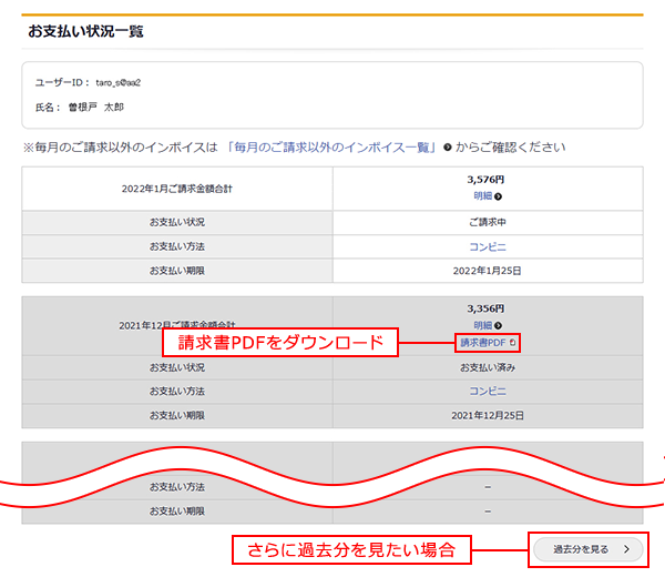 ご請求明細(請求書PDF)をダウンロードする場合 → 「請求書PDF」リンクをクリック
